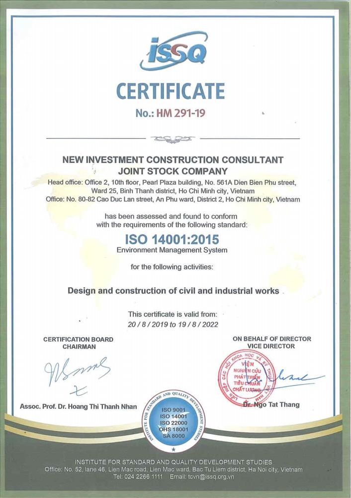 ISO 14001:2015 certificate